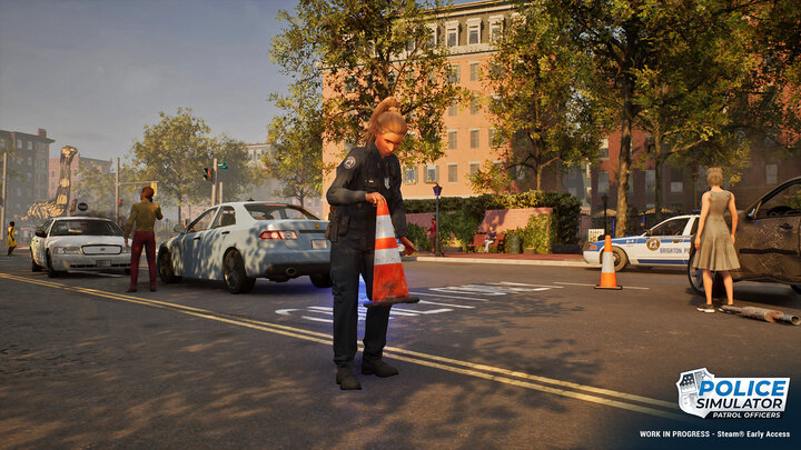 Controlling traffic – for example to secure the scene of an accident – is part of everyday life for the patrol officers in the busy streets of the fictional US East Coast metropolis of Brighton. With the Traffic Management update, they can now ensure the safety of citizens even better. The update enables them to block off entire streets or individual lanes with the help of traffic cones and barriers. Bystanders, passers-by and witnesses may be instructed to wait at a location designated by police officers, to not use one of the sidewalks or to turn around, and choose an alternate route to their destination. Vehicles can also be asked to either wait (already available during the beta phase) or to drive back in the other direction (available at the final release of the update).